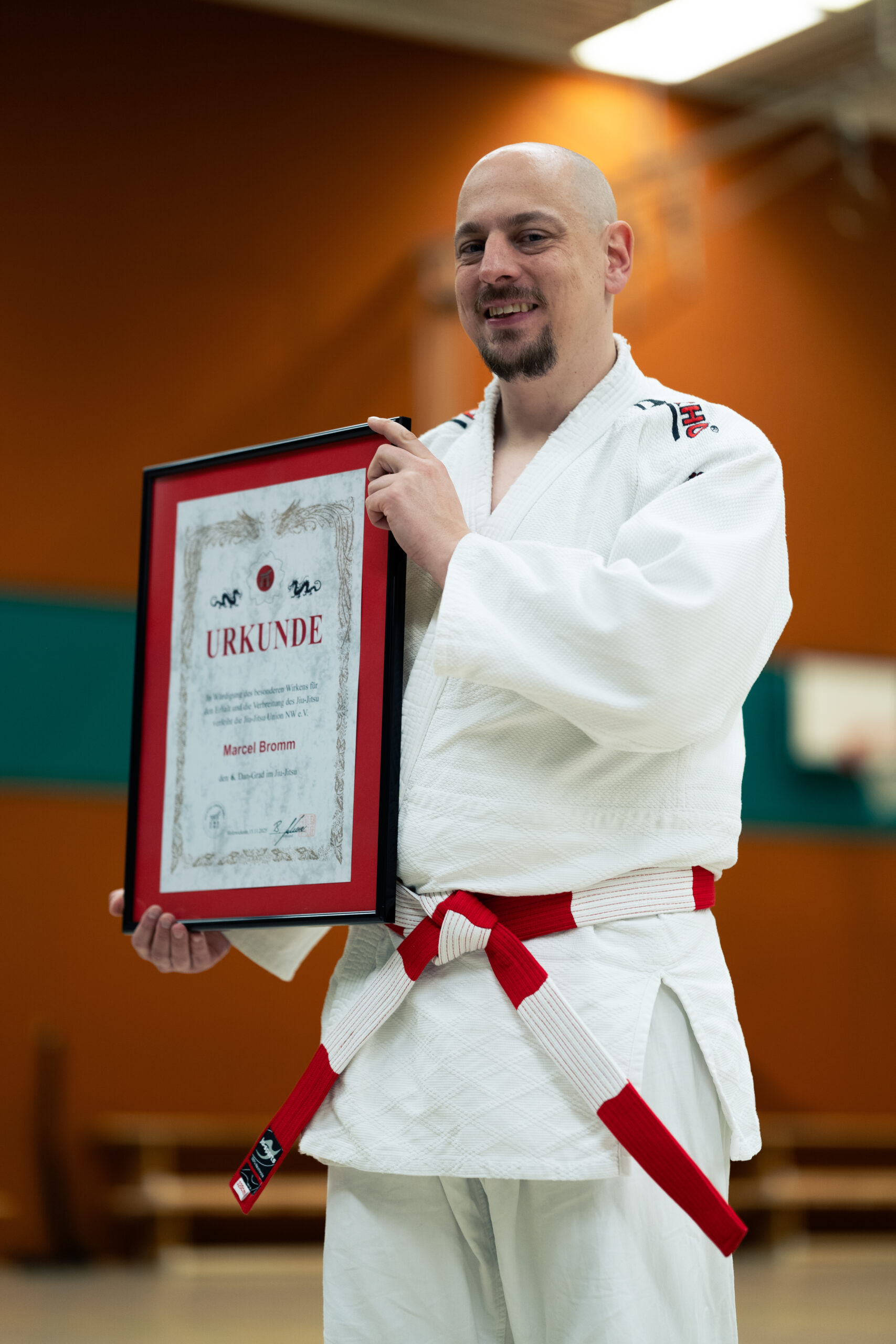 Beim Jahresabschlusslehrgang 2025 in Holzwickede ist Marcel Bromm aus der Jiu-Jitsu Abteilung des TSV Hagen 1860 mit dem 6. Dan ausgezeichnet worden. Die Ehrung nahm Benedikt Meinhardt, erster Vorsitzender der JJUNW, vor. Bromm ist damit der jüngste und zugleich der erste Großmeister unter 40 Jahren in der Geschichte des Landesverbandes. Bromm war viele Jahre Schüler des Verbandsmitbegründes Jochen Kohnert (10. Dan Jiu Jitsu, ) und trägt zusätzlich den 1. Dan im Judo. Innerhalb der JJUNW ist er seit Jahren als zweiter Vorsitzender tätig und übernimmt umfangreiche organisatorische Aufgaben, die maßgeblich zum Funktionieren des Verbandes beitragen. Zudem gehört er der technischen Kommission an und wirkte intensiv an der neuen Prüfungsordnung und der Neugestaltung des Prüfungswesens mit.